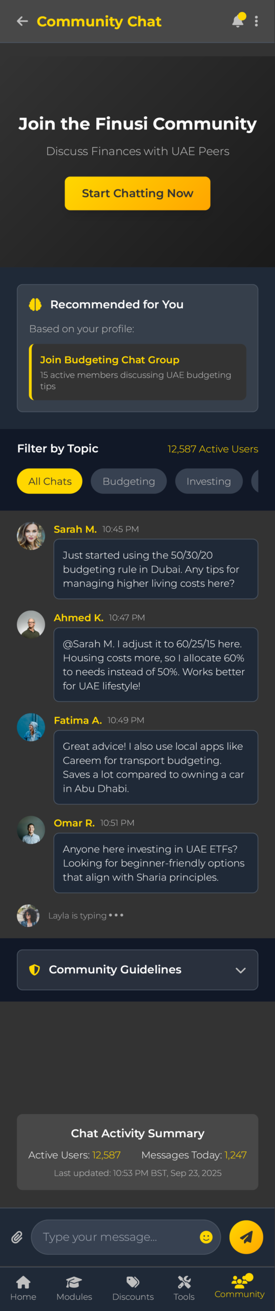 Absolutely! Finusi offers offline mode, letting you download courses and tools to learn anywhere, perfect for Dubai’s busy commuters or remote areas. Bilingual support (11 languages) ensures accessibility for all, from expats to locals. This aligns with the UAE’s 90% smartphone penetration, making financial education available anytime, supporting the government’s literacy push (e.g., ADIB 2025 Programme).